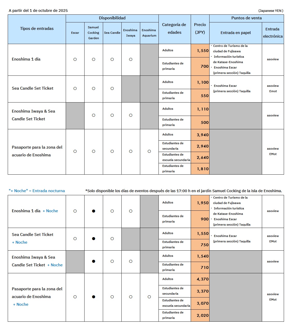 • Tenga en cuenta la hora de cierre del Acuario de Enoshima y de Enoshima Iwaya.